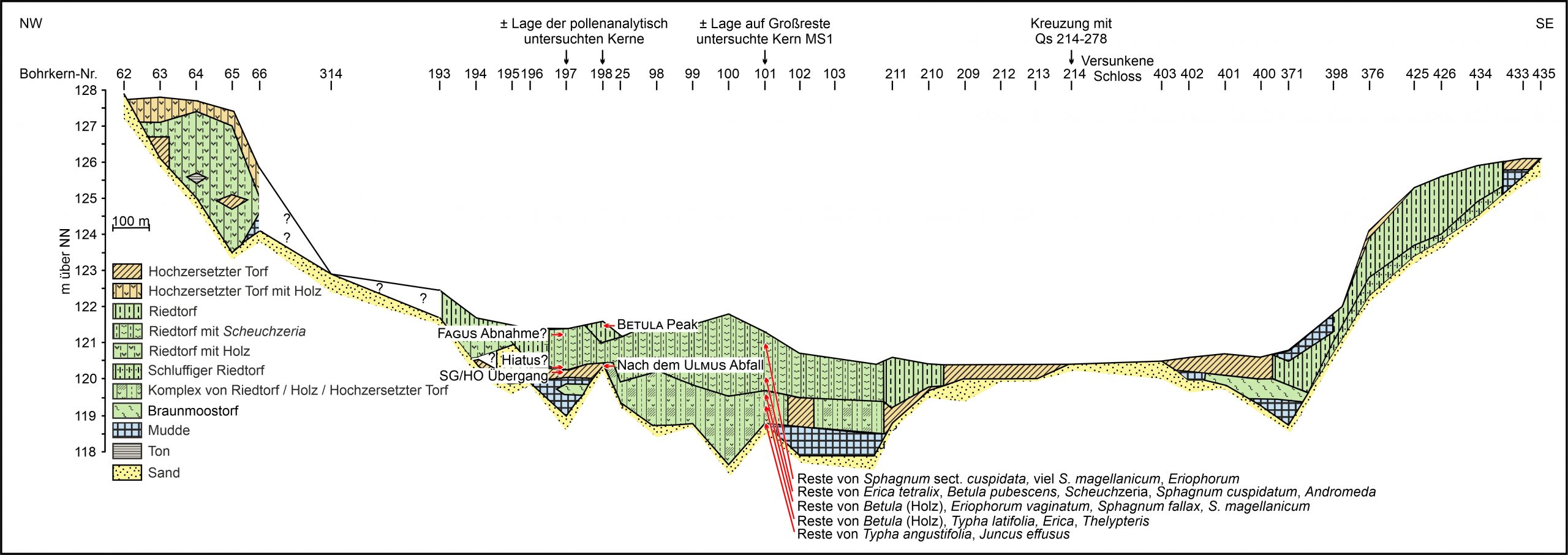 Currently the research of the Dubringer Moor is extended with the processing of data from the unpublished report from Buchholz et al. (1985) including 15 lithological cross-sections and 9 pollen diagrams.